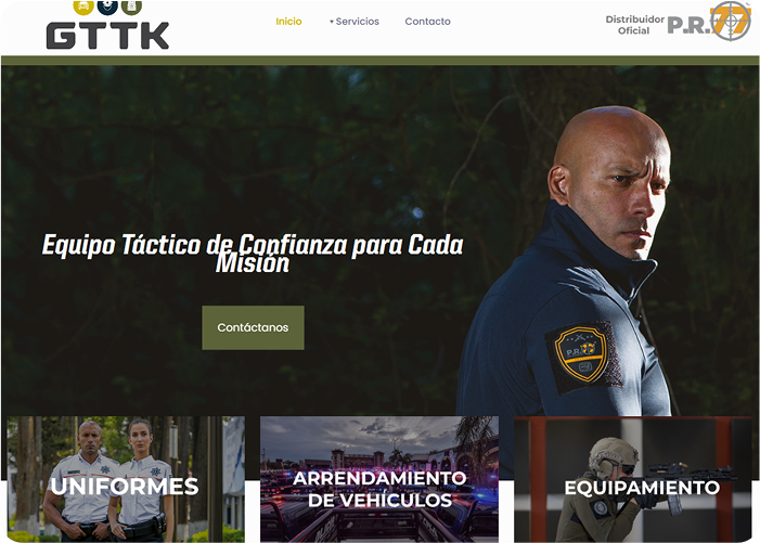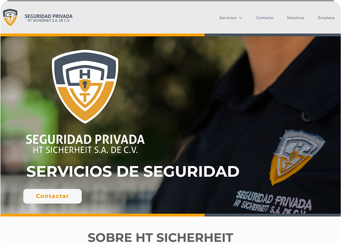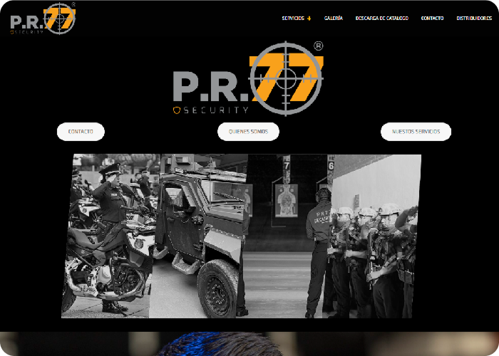 Private security services website offering risk analysis, geolocation, and monitoring.